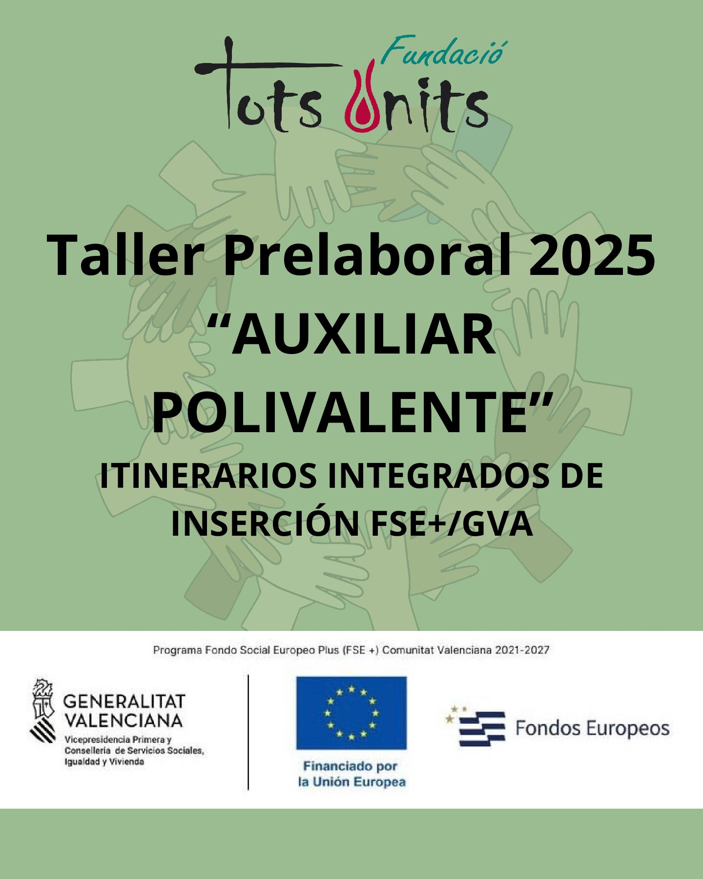 FUNDACIÓ TOTS UNITS somos una entidad sin ánimo de lucro comprometida con las personas de las comarcas de Castelló que buscan trabajo.